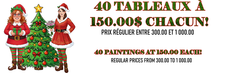 ŒUVRES VENDUES TELLE QUE VUES – NON-ENCADRÉES – VENTE FINALE – AUCUNE SUBSTITUTION – VALIDE JUSQU’AU 24 DÉCEMBRE OU ÉPUISEMENT DES ŒUVRES SÉLECTIONNÉES